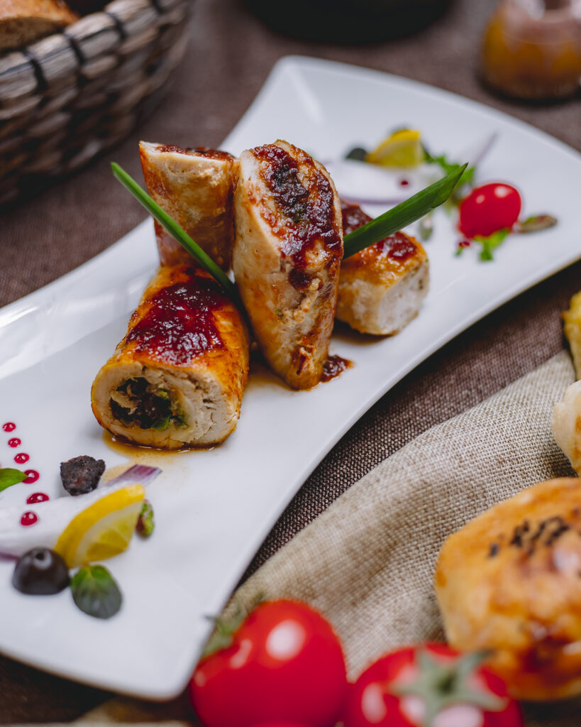 - Sides: Fresh salad with arugula, pear, and balsamic vinaigrette